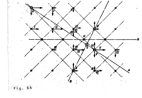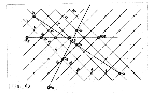 ["Figure 30 shows the block diagram for a calculating space... The squares v and p represent registers to which numbers can be added. The shifting parts of the system, which serve to carry out subtraction, are represented by the circles marked with a triangle. The verticle line at the exit of the triangle member means negation... The symbols in current use reduce the shifting to its single elements, which correspond to the basic operations of Boolean algebra (conjunction, disjunction and negation)... the pulse beats are represented in Figure 30 by I and II."]